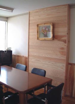 フロアや腰板など木をふんだんに取り入れて、雑然と無機質な事務所の